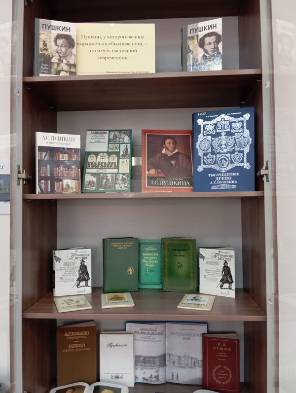 Книжная - иллюстративная выставка «К Пушкину сквозь время и пространство», развернутая в информационно-библиотечном центре (к.108), представляет разнообразные материалы, связанные с жизнью и творчеством Александра Сергеевича Пушкина.