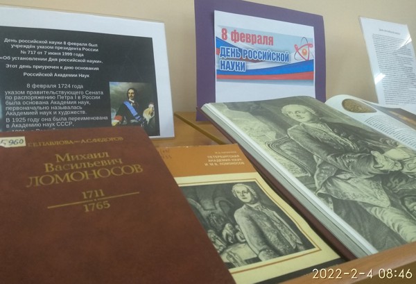 Книги о М. Ломоносове, К. Циолковском, И. Павлове, Д. Менделееве и многих других ученых, их труды представлены на книжной выставке, оформленной в читальном зале отдела обслуживания научной литературой.