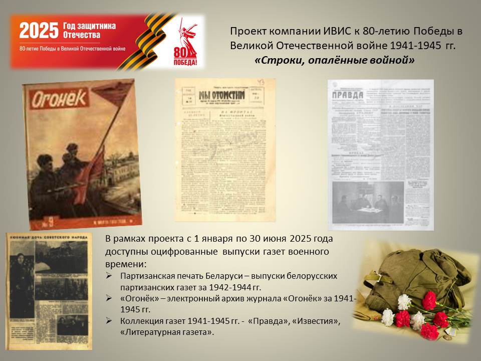 Электронная БД периодики «ИВИС» предоставляет доступ к Коллекции, посвященной 80-летию Великой Победы.