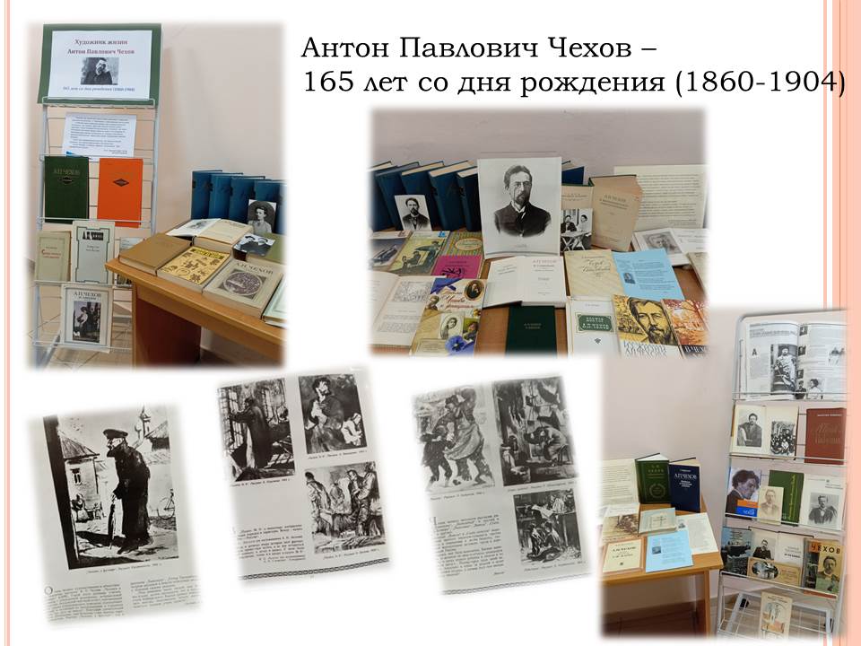 Информационно-библиотечный центр приглашает любителей русской, классической литературы на новую выставку, посвященную 165-летию со дня рождения Антона Павловича Чехова.
