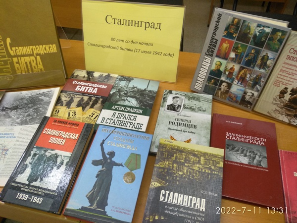 80-летию со дня начала Сталинградской битвы в информационно-библиотечном центре подготовлены: книжная выставка «СТАЛИНГРАД» (к.103) и виртуальная выставка «Город в огне».