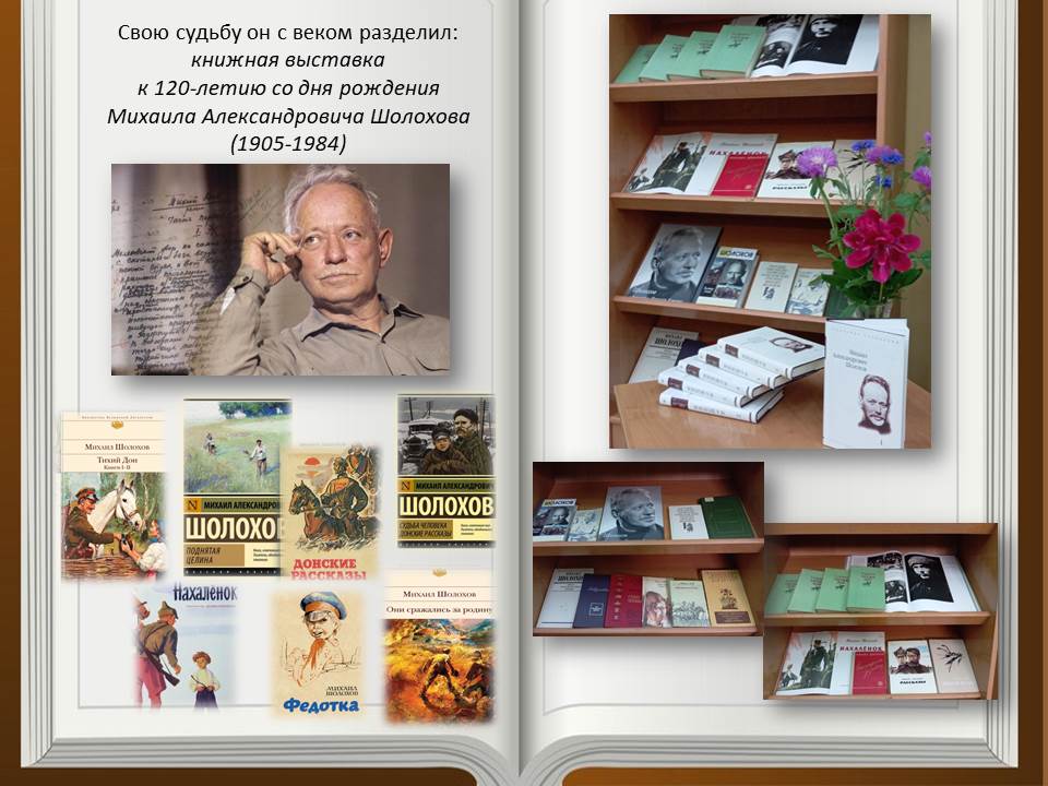 На выставке «Свою судьбу он с веком разделил» представлены различные материалы, касающиеся его жизни и творчества. И, конечно, книги М. А. Шолохова.