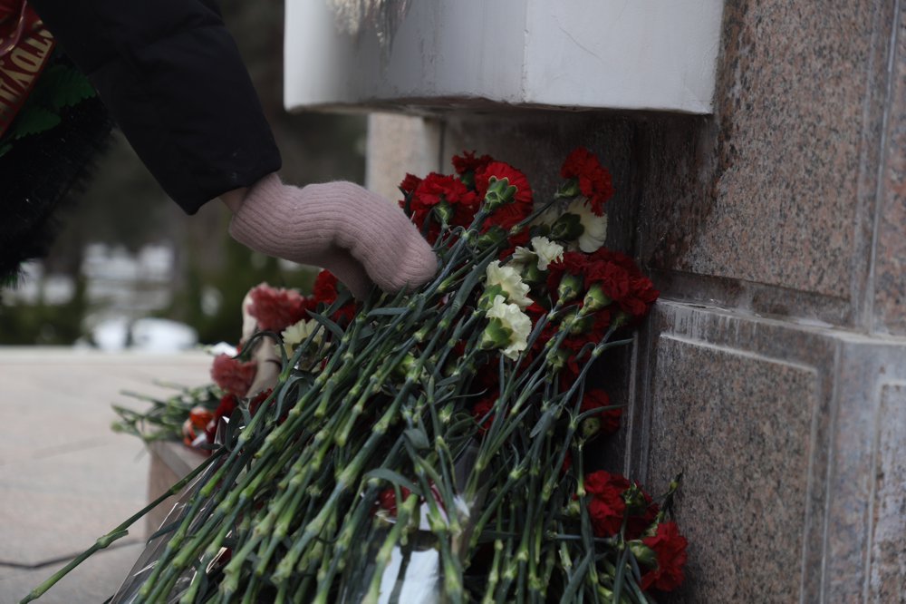 К подножию монумента пришли те, кто хранит память о подвиге защитников города. Участники возложили красные гвоздики — цветы, ставшие символом народной благодарности и вечной памяти о стойкости бойцов дивизии, принявших на себя удар врага.
