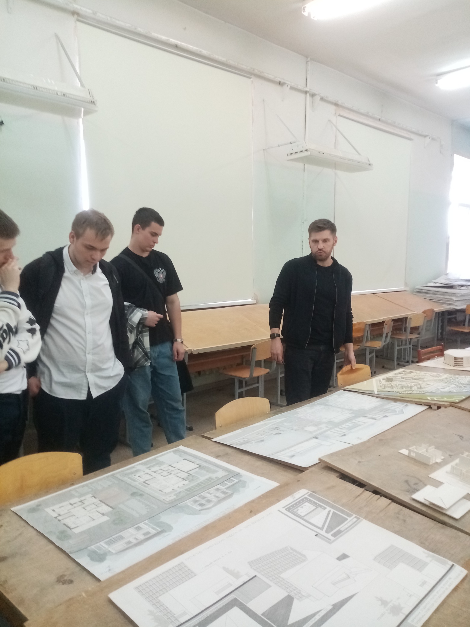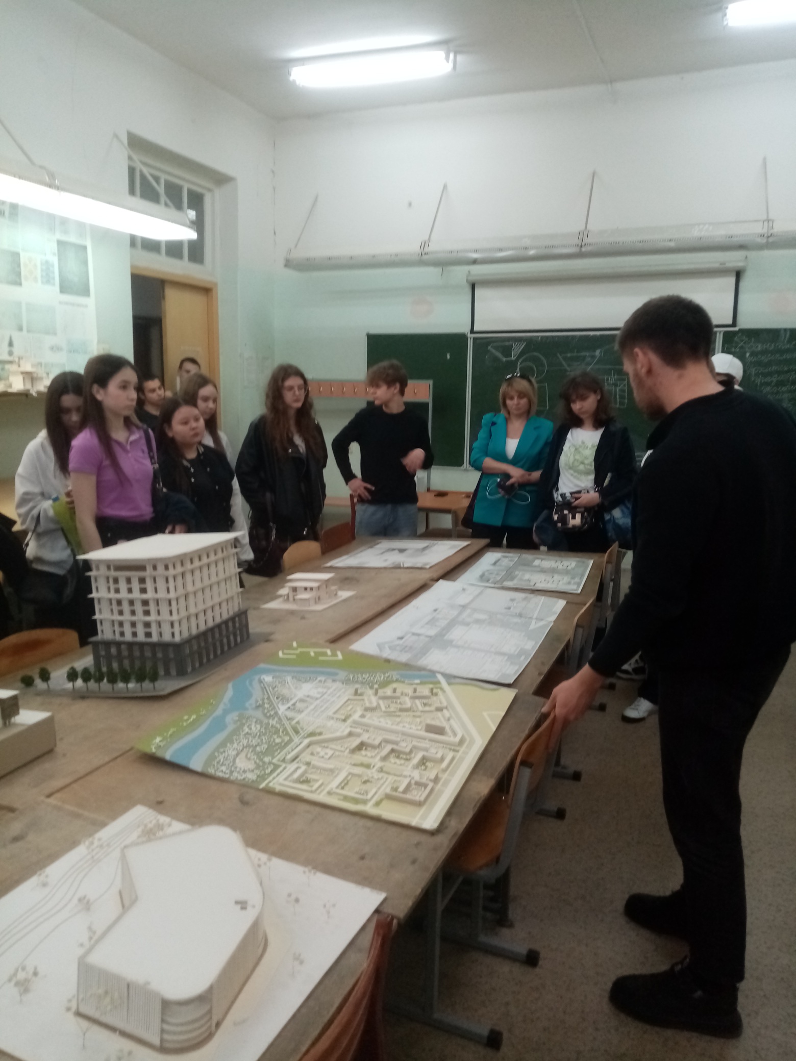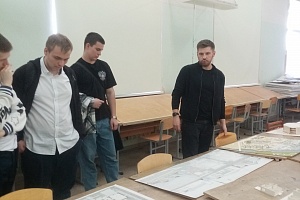 Завершилась экскурсия на кафедре «Урбанистика и теория архитектуры». В творческой мастерской кафедры ассистент Илья Николаевич Плешаков показал пути становления архитекторов – от создания простых макетов до полноценных архитектурных проектов.