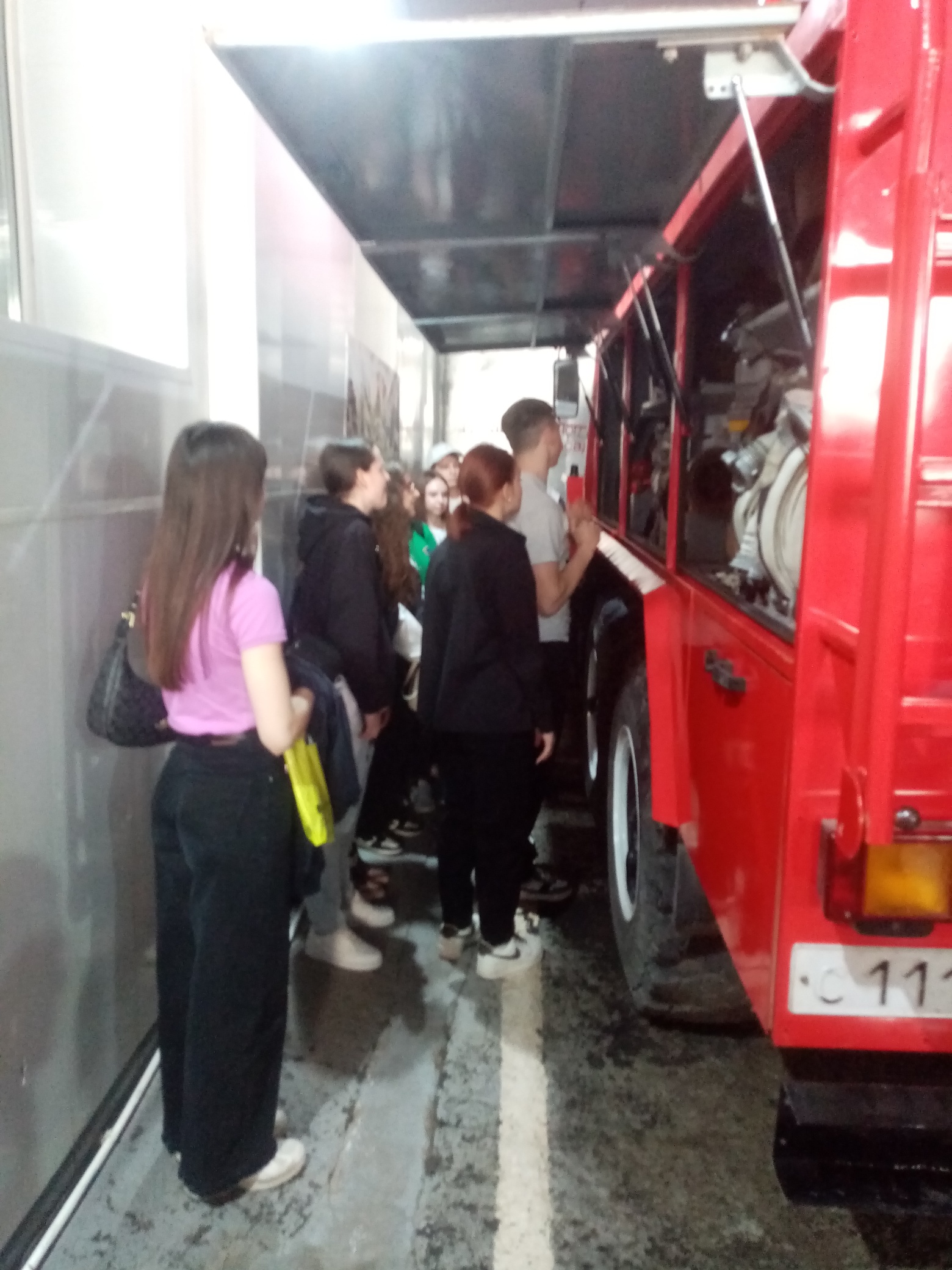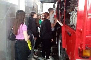 Первым пунктом экскурсии стала Учебная пожарная часть. Студенты специальности «Пожарная безопасность» продемонстрировали устройство пожарного автомобиля, а также навыки одевания боевой формы – самые смелые гости смогли себя в этом попробовать.