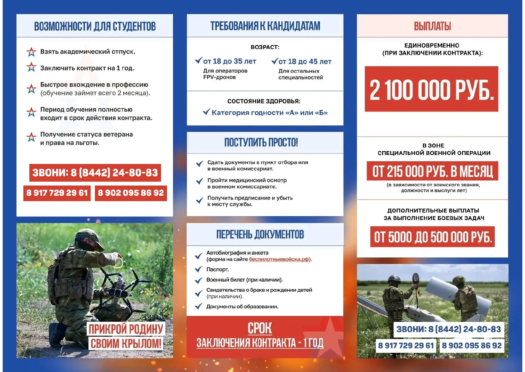 Информируем о возможности стать военнослужащим по контракту – к назначению в подразделения беспилотной авиации (аэродромного базирования).