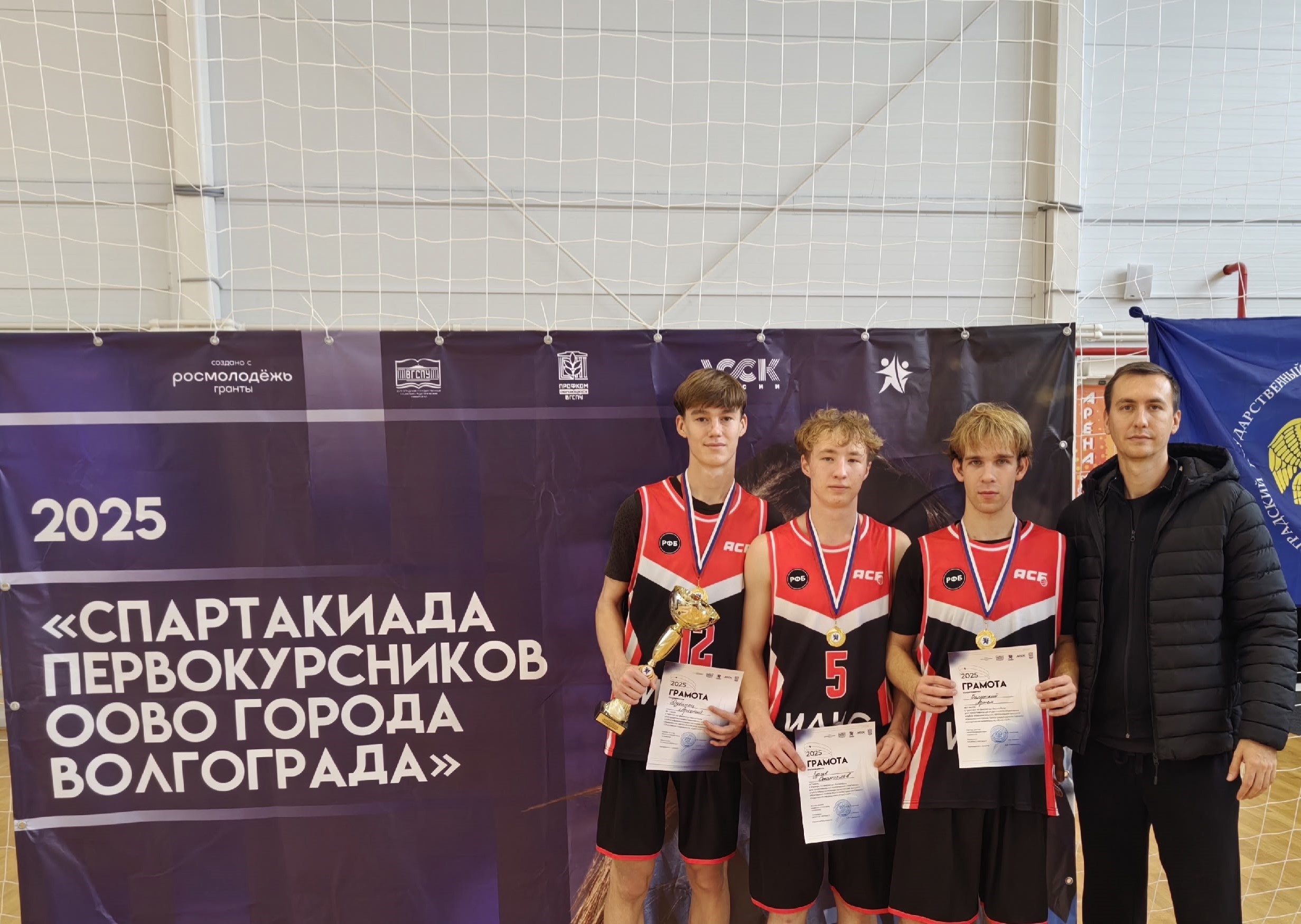 20-21 октября в нашем городе прошла спартакиада по фиджитал-баскетболу среди первокурсников образовательных организаций высшего образования г. Волгограда. В ней приняли участие спортсмены девяти команд из различных вузов города, в том числе студенты ИАиС: Белинский Артем, гр. ПГС 3-25, Дубинец Арсений, гр. СиЭОНО 1-25, и Гурчев Станислав, гр. ИСТ 2-25. Тренер команды – Брыскин Алексей Евгеньевич.