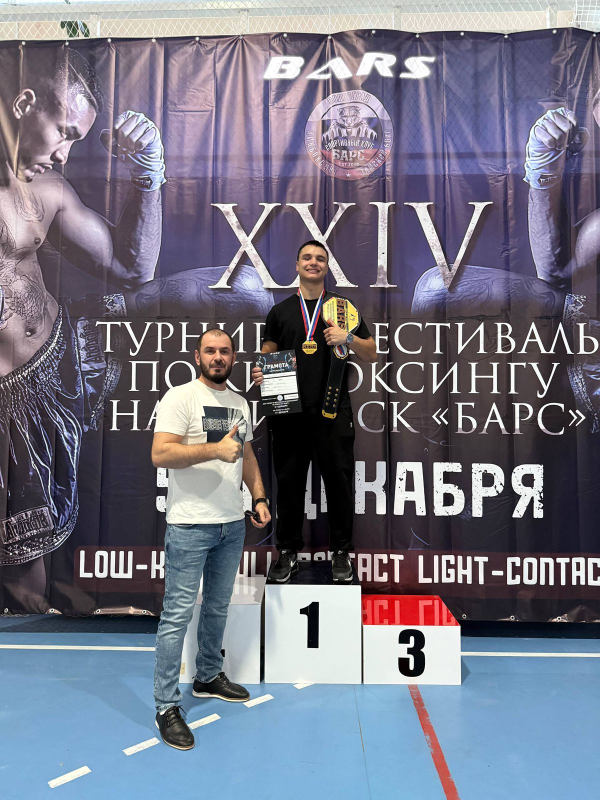В эти же дни, 5-7 декабря 2025 г., в Волгограде проходил турнир и фестиваль по кикбоксингу на призы СК «Барс». Участниками турнира стали бойцы из Ставропольского края, Краснодарского края, ЛНР, Дагестана, Ростовской и Волгоградской областей. Наш студент Михаил Бурлачук (гр. ПГС-2-24) провел 2 поединка в двух возрастных категориях, каждый из которых был завершен досрочной победой нокаутом. По итогам турнира награжден чемпионским поясом, денежным призом, грамотами и медалями.