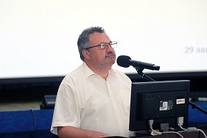 Далее члены совета перешли к рассмотрению повестки дня. С основным докладом об итогах деятельности коллектива университета в 2024/2025 учебном году и задачах по дальнейшему развитию университета выступил ректор ВолгГТУ член-корр. РАН А.В. Навроцкий.