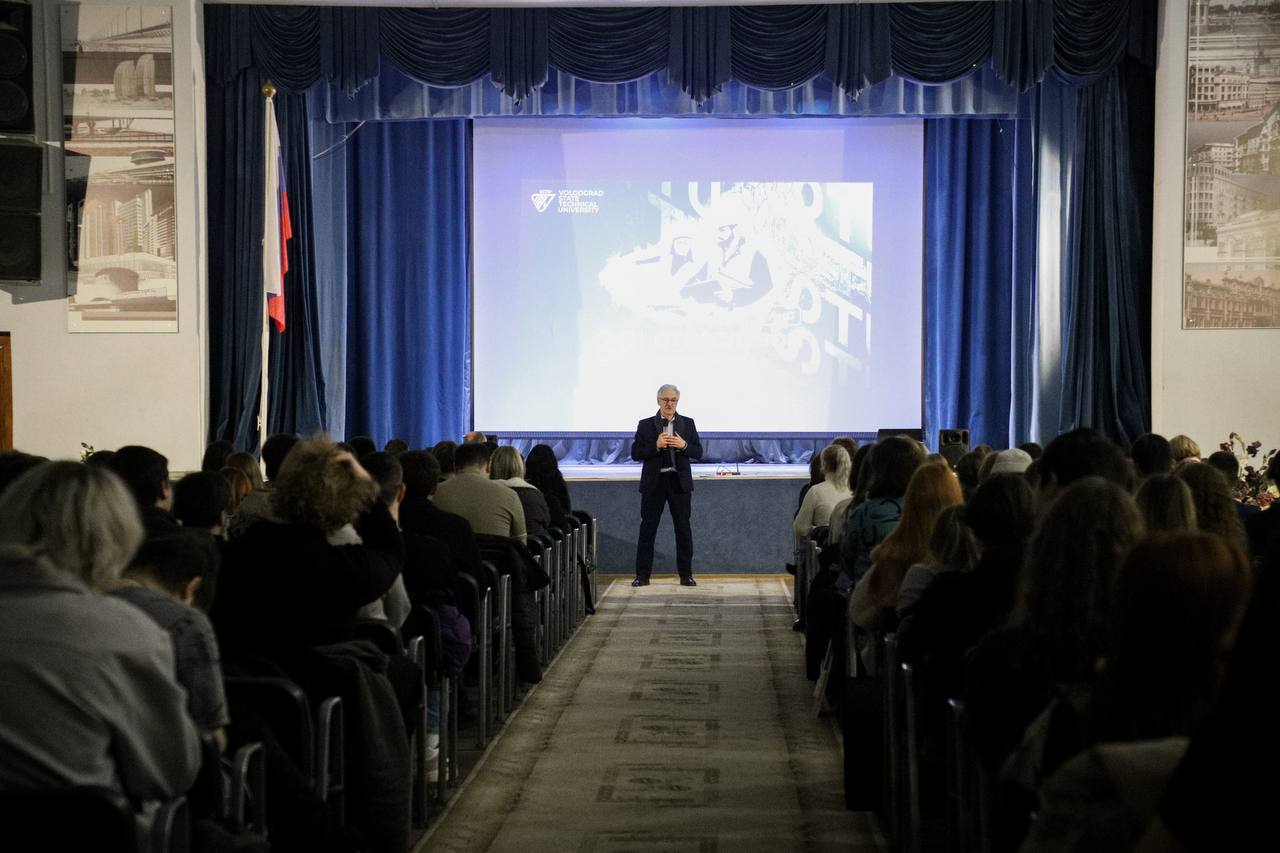 Открывая встречу, перед студентами выступил председатель комитета строительства Волгоградской области Евгений Евгеньевич Панкин, который подчеркнул, что гордится Волгоградом и считает важным отстаивать интересы родного города. Эту мысль продолжил первый проректор-директор ИАиС ВолгГТУ Олег Викторович Душко, отметив, что именно от молодых специалистов, их знаний и энергии зависит будущее не только строительной отрасли, но и всего региона.