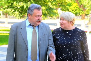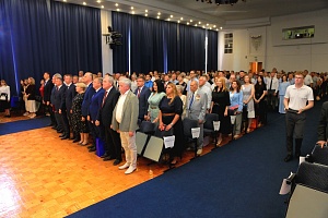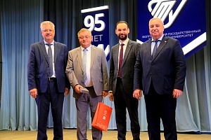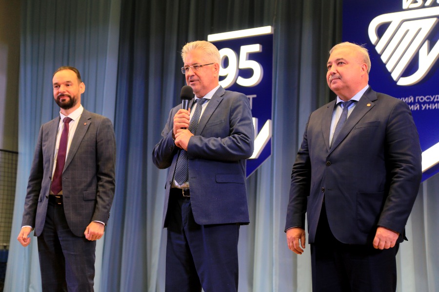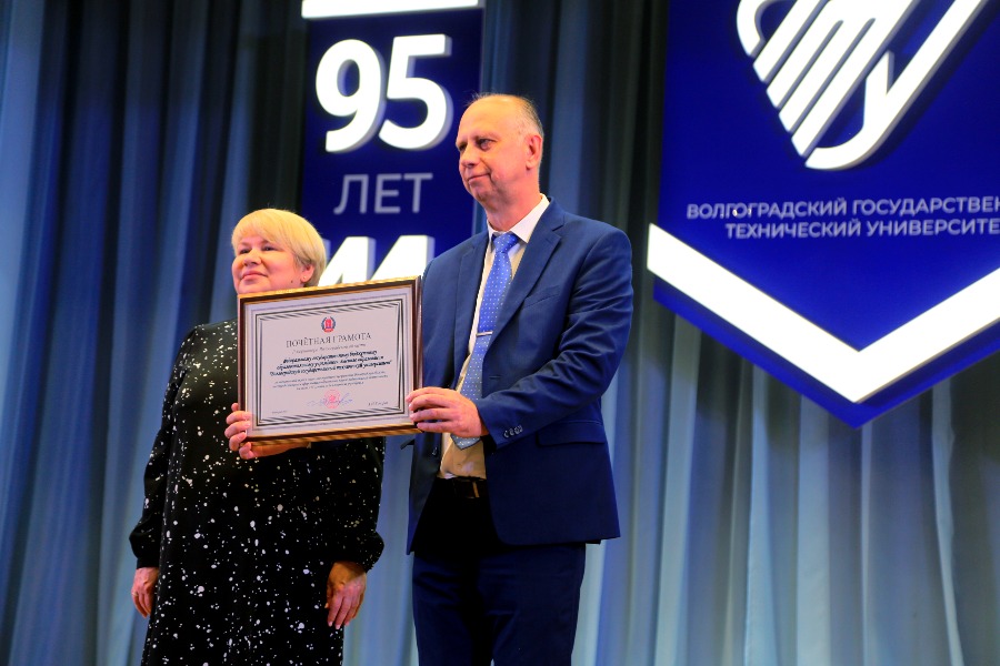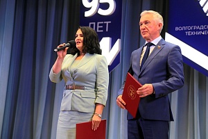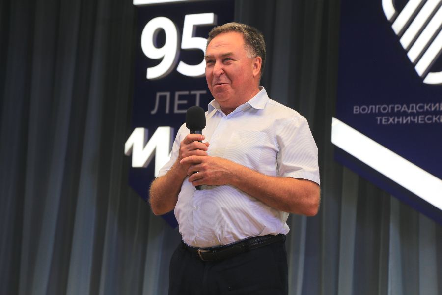 А после были поздравления от представителей власти. Заместитель губернатора Волгоградской области Лариса Савина подчеркивала, что ВолгГТУ – это вуз, который живет вместе со страной. «Политех – это настоящая опора региона и России. Потому что в вузе всегда был, остается и всегда будет самый серьезный поход к обучению, к науке и к решению самых разных задач, которые стоят перед страной», – заметила Лариса Михайловна. Л.М. Савина вручила ректору ВолгГТУ Александру Валентиновичу Навроцкому почетную грамоту губернатора Волгоградской области А.И. Бочарова за значительный вклад в социально-экономическое развитие региона и в связи с 95-летием вуза. Поздравил политехников и первый заместитель председателя Волгоградской областной Думы Михаил Струк. Михаил Владимирович отмечал, что выпускники вуза в авангарде всего – в образовании, в науке, в подготовке кадров и вручил ректору вуза приветственный адрес от председателя Волгоградской областной Думы А.И. Блошкина. Поздравления сегодня звучали и от представителей городской власти: заместителя главы Волгограда Анны Кувычко и председателя Волгоградской городской Думы Владлена Колесникова. Владлен Владимирович с нескрываемой теплотой вспоминал свои годы обучения в вузе, отдельно благодарил О.Д. Косова, многолетнего декана факультета автоматизированных систем, транспорта и вооружений. «Политех дал всем нам возможность гармоничного развития! Потому что мы не только получали знания и занимались наукой, но в нашей студенческой жизни были еще стройотряды, спорт, был СТЭМ и многое другое! Впрочем, это было, это есть и это всегда будет! И вообще без политеха Волгоград представить просто нельзя. Эти 95 лет вписаны золотыми буквами в историю города и всей страны!» – подчеркнул В.В. Колесников.