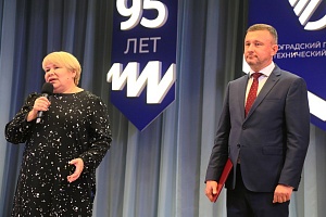 Поздравляла сегодня политехников и вручала им ведомственные грамоты председатель Волгоградской областной организации профсоюза Л.Л. Кочергина.