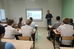 Заместитель ответственного секретаря приемной комиссии ВолгГТУ Д.С. Сарбаев ознакомил школьников с факультетами и направлениями подготовки университета, рассказал о важности получения высшего инженерного образования, об истории и инфраструктуре университета, уточнил необходимый для поступления перечень общеобразовательных предметов по результатам единого государственного экзамена.
