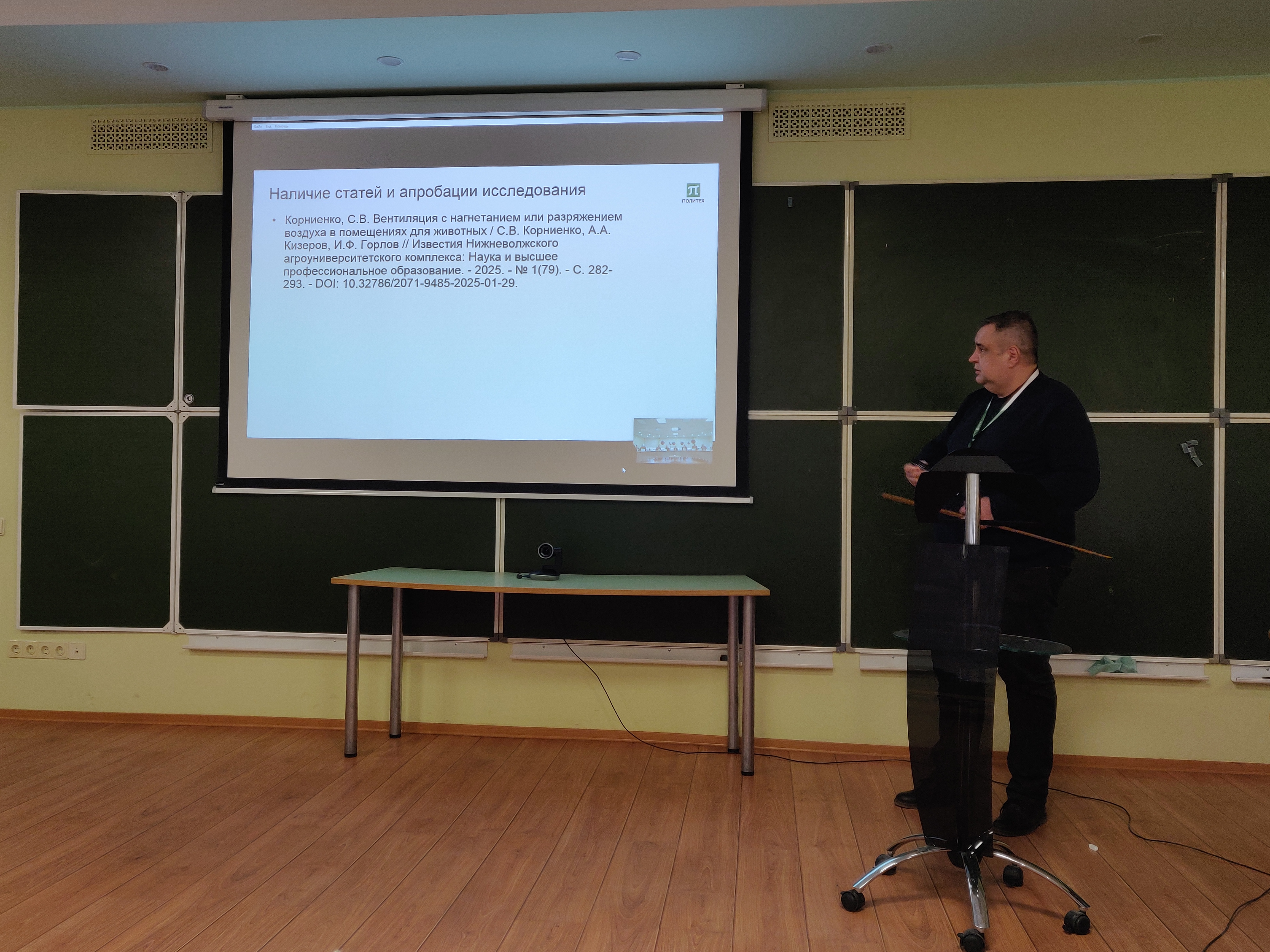 Корниенко С.В. выступил на конференции с очным докладом «Биоклиматический анализ животноводческих зданий в летний период года». Актуальность темы обусловлена отсутствием биоклиматических показателей помещений для лактирующих коров в условиях умеренно-континентального климата в летний период, что затрудняет оценку теплового стресса животных.