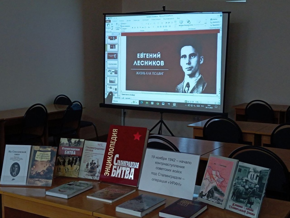 19 ноября – важная дата, которая отмечена в календаре как день начала контрнаступления советских войск под Сталинградом в 1942 г. В этот день, 19 ноября 2025 г., в информационно-библиотечном центре ИАиС прошло просветительское мероприятие памяти писателя-фронтовика, юного защитника Сталинграда Евгения Дмитриевича Лесникова (1928 – 1982 гг.).