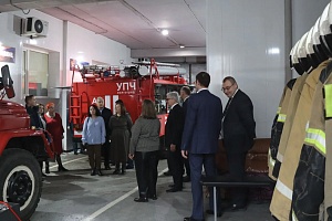 Перед началом заседания для гостей и участников мероприятия была организована экскурсия по учебной пожарной части. Провел ее Евгений Алексеевич Заикин – преподаватель кафедры «Пожарная безопасность и защита в чрезвычайных ситуациях» и действующий сотрудник МЧС России. Участники встречи познакомились с материально-технической базой подразделения, посетили гараж со специализированной техникой, учебную аудиторию, комнату отдыха личного состава и иные служебные помещения учебной пожарной части ИАиС ВолгГТУ. После окончания экскурсии работа продолжилась в диссертационном зале.