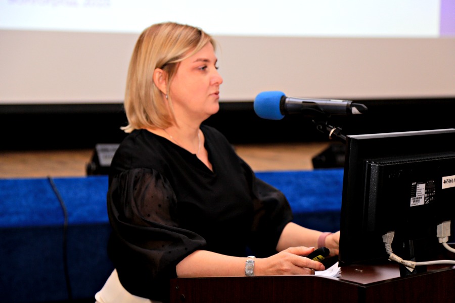 О молодежной политике и организации воспитательной работы в ВолгГТУ докладывала проректор, которая отвечает за эту политику в вузе, Ольга Пескова. Ольга Сергеевна прежде всего рассказала о национальных целях развития РФ на период до 2030 года и на перспективу до 2036 года. И одна из этих целей – это реализация потенциала каждого человека, развитие его талантов, воспитание патриотической и социально-ответственной личности. Говорилось и про целевые показатели. Один из них – создание к 2030 году условий для воспитания гармонично развитой, патриотичной и социально ответственной личности на основе традиционных российских духовно нравственных и культурно-исторических ценностей. Докладчик говорила о том, как в целом организована воспитательная работа. Прежде всего – это проректор по молодежной политике, затем управление по молодежной политике, которое включает в себя отделы, это деканы, кураторы, старосты, совет обучающихся. Много говорилось сегодня о воспитании через образование (учебный процесс). Отмечалась важность развития института кураторства академических групп, учета успеваемости и посещаемости. Обязанности: контроль, адаптация студентов к требованиям образовательной среды, вовлечение студентов к участию в мероприятиях. О.С. Пескова рассказывала о мастерах воспитания, которых достаточно много в вузе, чтобы поддерживать это воспитание на должном уровне. Подчеркивалось, что индекс эффективности воспитательной деятельности в вузе – это программа «Твой ход», которая учитывает вовлеченность студентов во внеучебную жизнь. Ольга Сергеевна ответила на вопрос, а каковы направления интересов студентов? Их много, этих направлений: волонтерская, научная и творческая деятельность, студенческое самоуправление, СМИ, патриотическая направленность и др. Судя по опросам, которые проводились в ВолгГТУ, можно с уверенностью говорить о том, что в вузе достаточно высокий процент опрошенных удовлетворены уровнем внеучебной жизни в техуниверситете, а также очень высокий процент веры у молодых людей в широкие возможности самореализации в России. О многом говорят и результаты мониторинга социально-психологического самочувствия, как преподавателей, так и студентов ВолгГТУ. На вопрос «Какие эмоции в последнее время вы испытываете по отношению к вузу?», почти 50% как преподавателей, так и ребят ответили, что они испытывают гордость, почти столько же – благодарность и доверие. А на вопрос по поводу эмоций к России, то здесь вообще одинаковые проценты. Люди гордятся и любят свою страну. Был еще один, не менее важный опрос. Первый вопрос звучал так: «Родина – одна, и именно здесь нужно жить и работать во благо, и гордиться ею», а второй так: «Родина – это просто место, а жить и работать можно где угодно». И на уточняющий вопрос: «Какое из предложенных утверждений на Ваш взгляд является наиболее верным?», подавляющее большинство респондентов ответили утвердительно на первый вопрос. О.С. Пескова много говорила о том, как в ВолгГТУ трепетно относятся к раскрытию талантов. Для этого в вузе созданы все условия: проводятся многочисленные конкурсы, фестивали, возможности есть для всех! Кроме этого, и это подчеркивалось отдельно, для вуза очень важна вовлеченность студентов во внеучебную работу патриотической направленности. Необходимо воспитывать 
