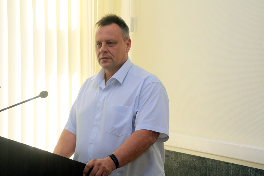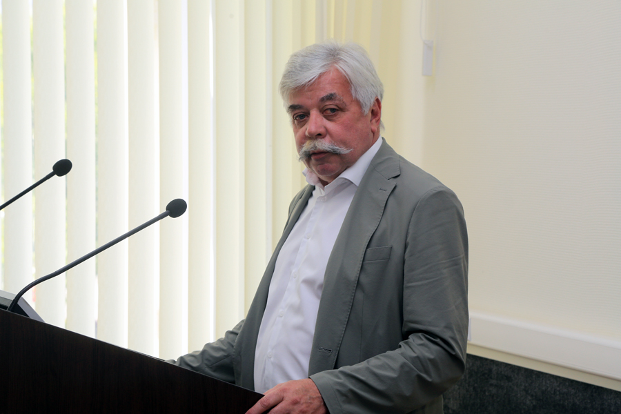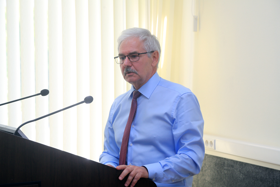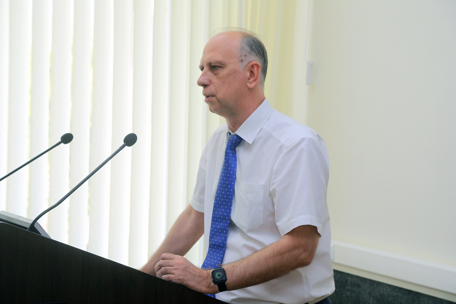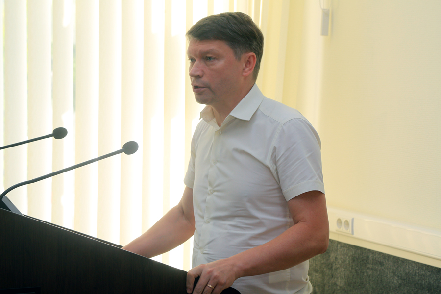Далее ректор университета Александр Навроцкий подробно остановился на общей готовности главного учебного корпуса (ГУК) к новому учебному году. Он высоко оценил проделанную работу заведующими кафедрами, которые оперативно и качественно устранили все выявленные недочеты в подготовке аудиторий и лабораторий, а также представил на слайде новое закупленное оборудование.