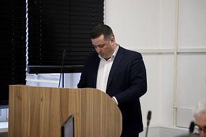 По кадровому вопросу члены ученого совета единогласно поддержали ходатайство о присвоении ученого звания профессора по направлению «Строительная механика» доктору технических наук, профессору кафедры ЦТУАС Игнатьеву Александру Владимировичу. Информацию о соискателе представил заместитель директора ИАиС по научной работе Юрий Юрьевич Юрьев.