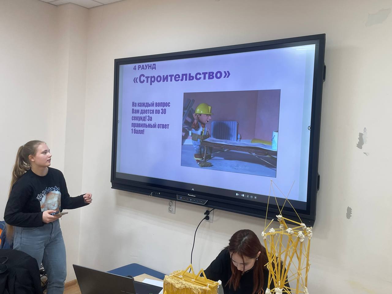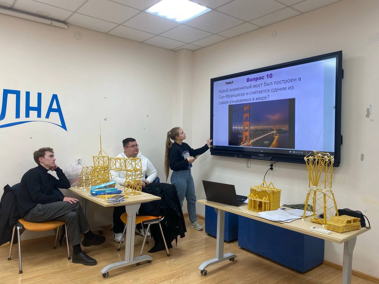 А наставниками в этот день были: ассистент кафедры «Строительство, основания и надежность сооружений» Станислав Юрьевич Иванов, ассистент кафедры «Строительная механика» Иван Сергеевич Завьялов, студенты Валерия Панова и Анастасия Андреева.